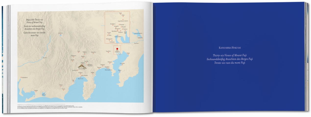 Among only a few complete reprints of the series, this XL edition pays homage to Hokusai’s striking colors and compositions with unprecedented care and magnitude. Bound in the Japanese tradition, Thirty-six Views of Mount Fuji presents the original 36 plates plus the additional 10 later added by the artist. The perfect companion piece to TASCHEN’s One Hundred Views of Edo and The Sixty-Nine Stations along the Kisokaidō, this publication paints an enchanting picture of pre-industrial Japan and is itself a stunning monument to the art of woodblock printing.