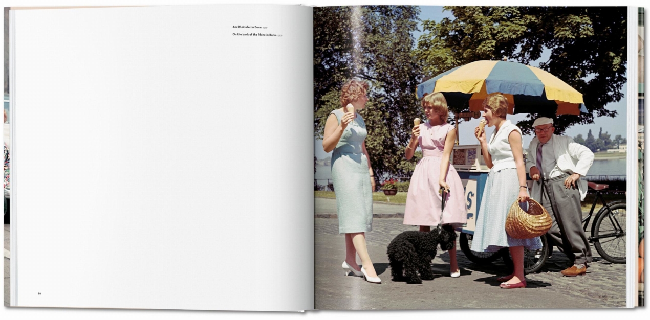 The photographs portray a country caught between the opposite poles of technological modernism and cultural restoration, between affluence and penury, between German Gemütlichkeit and the constant threat of the Cold War. They show the winners and losers of the “economic miracle,” people from all social classes, at home, at work, in their very limited free time and as consumers. But they also show a country that looks, in retrospect, like a film from the middle of the last century.