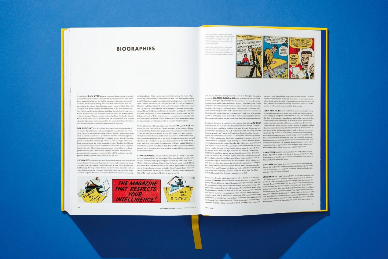 This XXL-sized collector’s dream, close in size to the original artworks, features the first 21 stories of the world’s favorite web slinger from 1962–1964. Rather than recolor the original artwork (as has been done in previous decades’ reprints of classic comics), TASCHEN has attempted to create an ideal representation of these books as they were produced at the time of publication. The most pristine pedigreed comics have been cracked open and photographed for reproduction in close collaboration with Marvel and the Certified Guaranty Company. Each page has been photographed as printed more than half a century ago, then digitally remastered using modern retouching techniques to correct problems with the era’s inexpensive, imperfect printing—as if hot off of a world-class 1960s printing press. A custom paper stock was exclusively developed for this series to simulate the feel of the original comics.