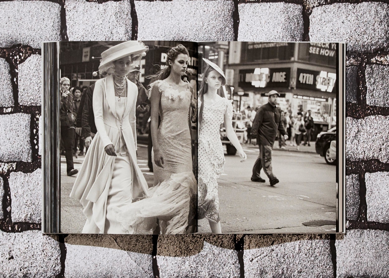 Seventy years of Dior history projected against the effervescence of Times Square, New York: this was the concept behind Lindbergh’s project, extraordinary both in scope and dimension, for which Dior, in an unusual move, allowed an unprecedented number of priceless garments to be taken from its vaults in Paris and shipped across the Atlantic.