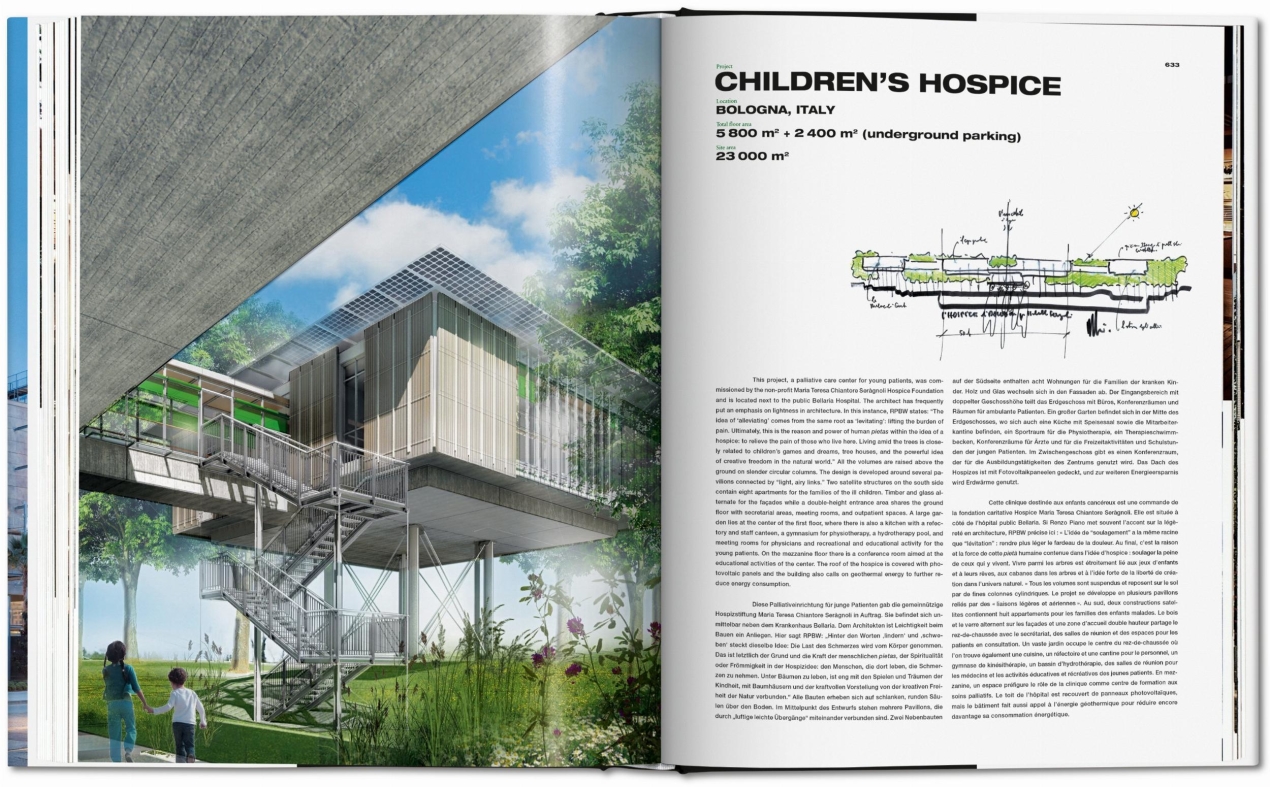 At the age of 84, the Italian maestro retains all of his enthusiasm and kindness—and his recent roster is more impressive than ever. As he confided to the author, “I think at a certain age, one can discover that there is what the French call the ‘fil rouge,’ a kind of red thread that relates one building to another over time. In my case, I believe it is about lightness and the art of building.” From freshly built museums in Athens and Santander; ongoing works in Lisbon, London, Toronto, and Geneva; to such humanitarian projects as the Emergency Children’s Surgical Hospital in Entebbe, Uganda, and the Children’s Hospice in Bologna, Italy, Piano’s career is a thrilling journey through the beauty and very essence of architecture.