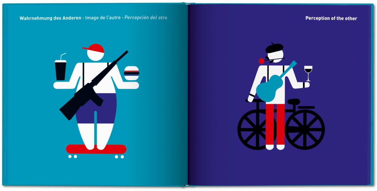 If the usual view of our divergences is full of clichés in which there are grains of truth, the same is true in reverse. From shopping to commuting, from going to school to romance, from working to annual leave, from football to heros—with 128 pages, this linen-bound booklet invites each side to appreciate the anomalies, change perspective and look at the world through the other’s eyes.